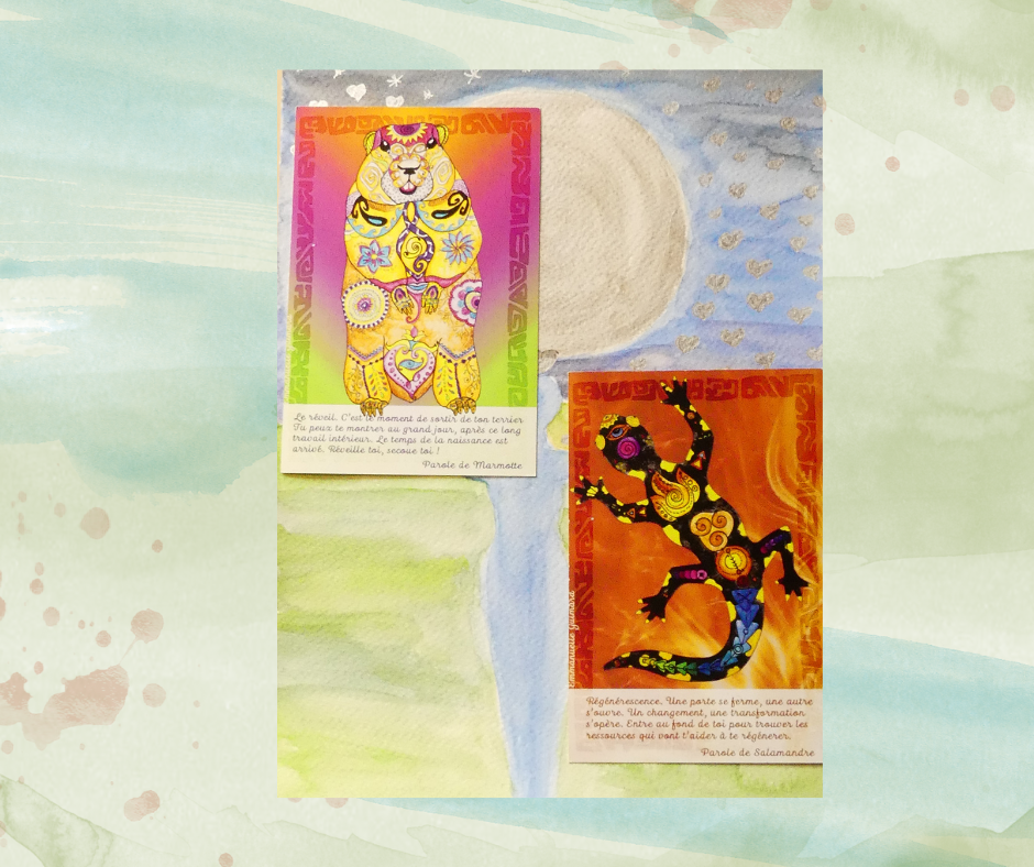Pour conclure ce tirage, une carte de l’oracle « L’animal, ton guide » devait être tirée… mais deux sont sorties, renforçant encore le message global.